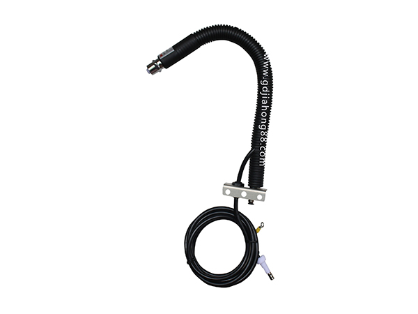 1、将离子风蛇高压线另一端连接头接到高压发生器的接头上,顺时针拧紧即可,再将黄色接地端子接到高压发生器的接地螺柱上,把接地螺丝拧紧即可良好接地。