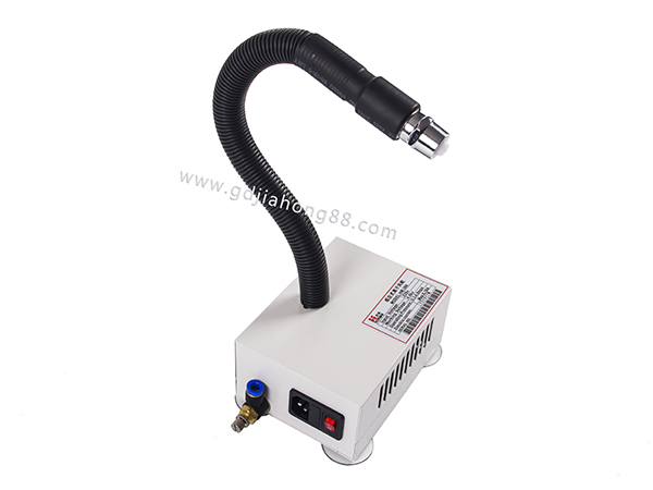 离子风蛇原理和应用范围KE-303连体离子风蛇是一款坐立式静电消除器,可手动将蛇管变形使风蛇指向目标方向,让离子气流直接吹向目标表面,方便移动,可安放于各种工作区域,除静电除尘效果好,需配压缩空气才可使用。